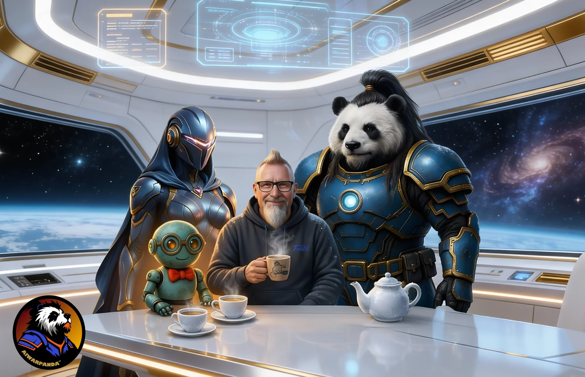 You’ve stumbled into the headquarters of AI War Panda a sci-fi audio drama where human-written stories collide with unruly artificial minds, stubborn robots, and one very grumpy panda. This isn’t content churn. It’s an ongoing narrative experiment: strange, funny, occasionally chaotic, and deliberately handcrafted.