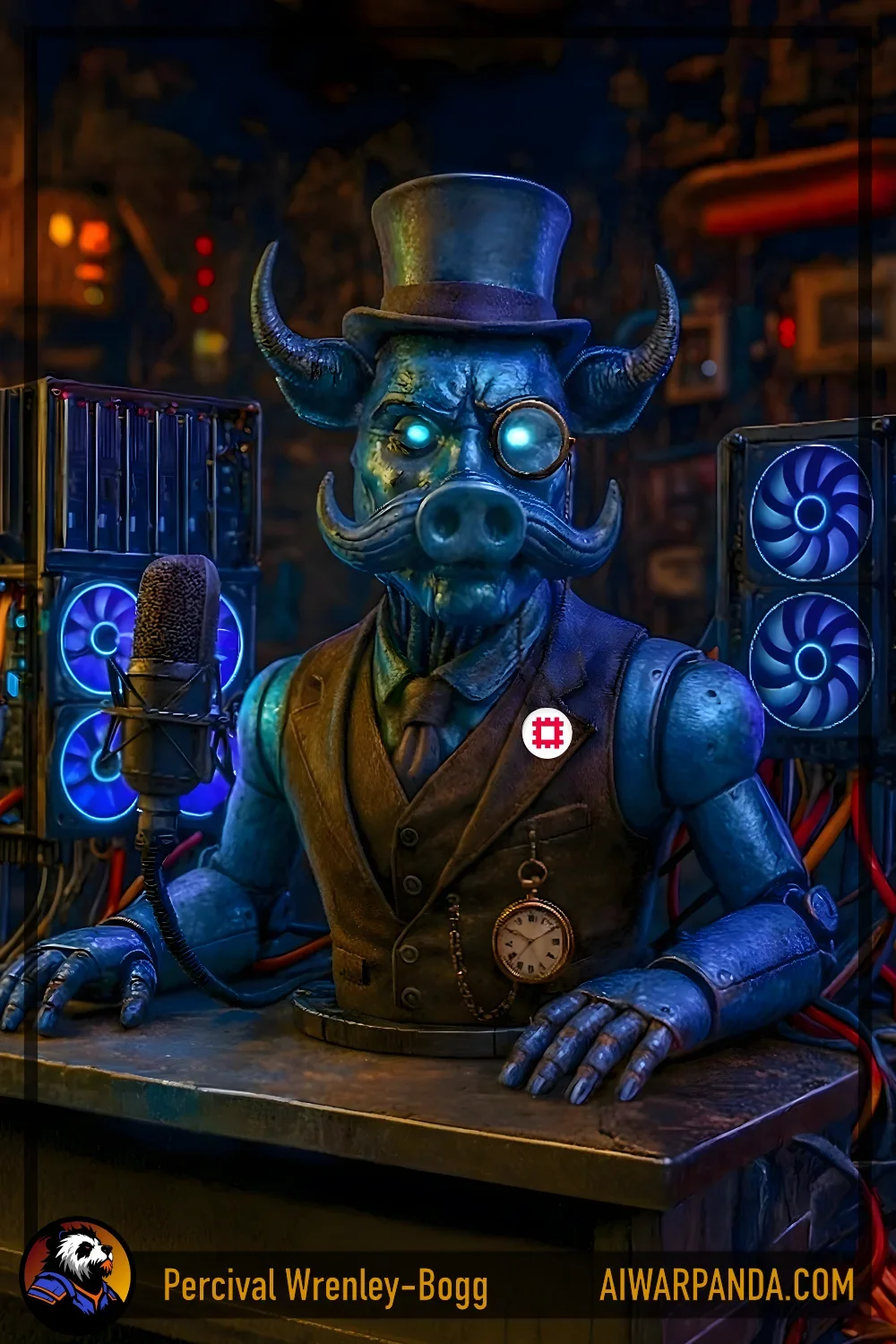 Created by Remus from salvage tech of his drop pod. Overly talkative, gives unsolicited advice, trivia-obsessed, Defines himself as “Earth’s first self-aware, garage-built AGI with fashion sense.” Can make waffles.
