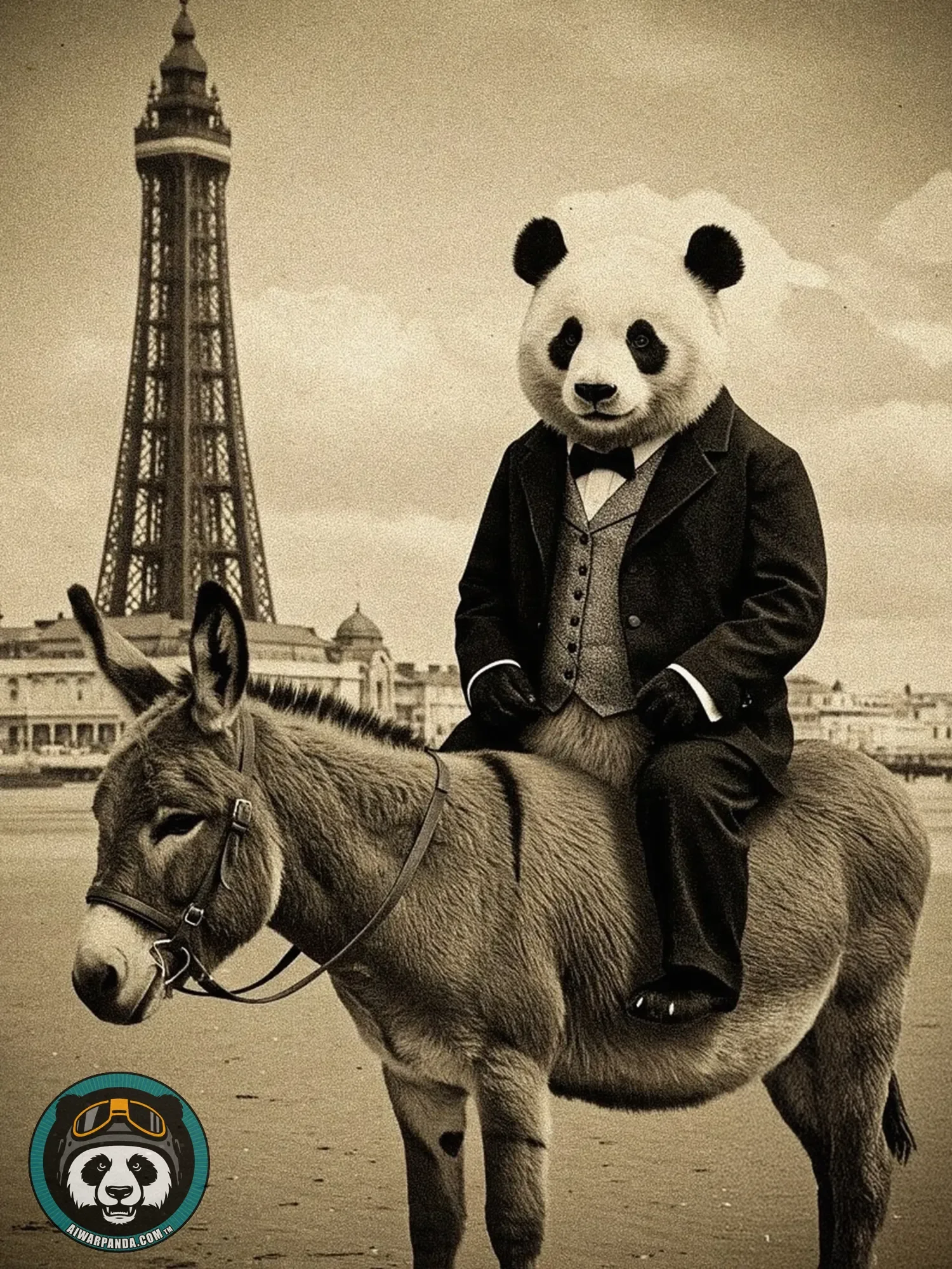 Feeling emboldened, I embarked upon a donkey ride. My steed, Daisy, seemed intrigued yet tolerant of her unusual passenger. I suspect Cambridge-educated pandas are not a common sight upon Blackpool’s sands. Nevertheless, she carried me with admirable grace, earning herself a glowing TripAdvisor review.